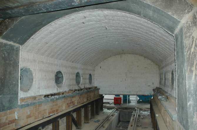 窯頂保溫工程其施工程序為:頂板V形縫填塞高鋁毯或高鋁棉、板縫間涂抹高溫粘結劑并貼鋪高鋁毯,保溫毯鋪設,密封涂料涂縫,噴涂保溫涂料、投煤管的安裝及保溫。