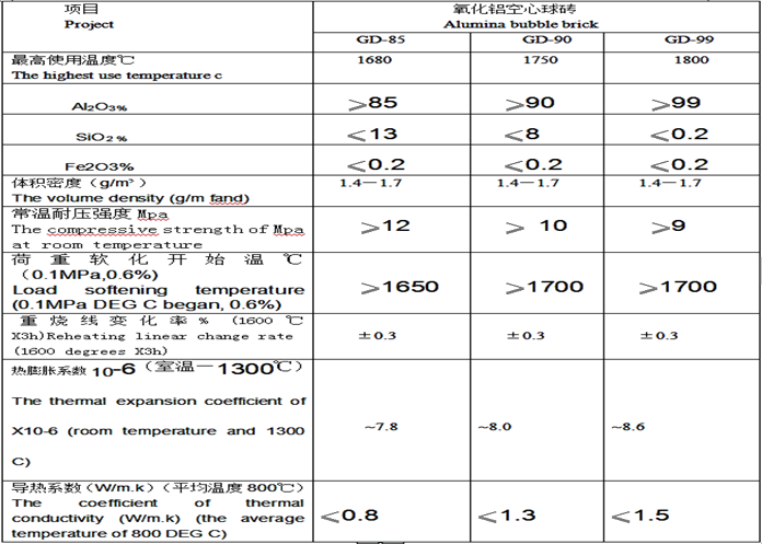 達到同樣的使用溫度,如使用重質磚其價格和氧化鋁空心球磚價格相當,而且還需要相當可觀的保溫層耐火材料。 如果使用氧化鋁空心球磚,每立方米可節省1.1-1.9噸重質磚的使用量,更可節省80%的耐火保溫材料。