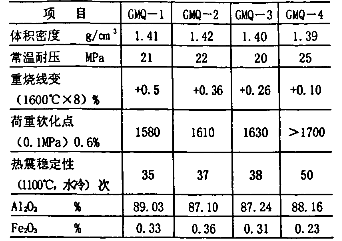 通過對燒后試樣檢測結(jié)果可以看出,試樣中Al2O3的百分含量基本相同的情況下,低Fe2O3含量的GMQ-4表現(xiàn)出更好的高溫性能。