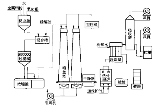 多晶莫來石耐火纖維生產(chǎn)工藝流程如圖1所示。