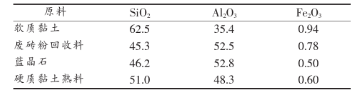 純鋸末輕質莫來石保溫磚的原料化學成分如表1所列。