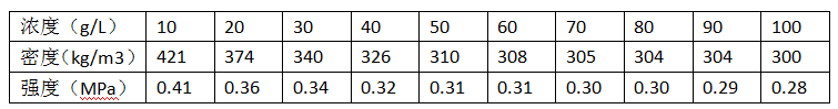 起泡劑濃度與制品密度及強度的關系
