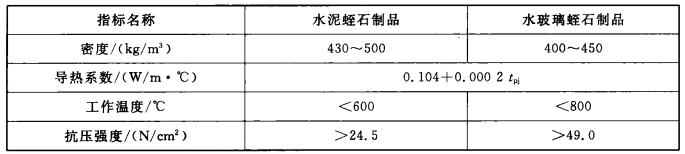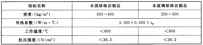 膨脹珍珠巖制品:常用水玻璃珍珠巖制品和水泥珍珠巖制品,制品應(yīng)符合GB10303—1988《膨脹珍珠巖絕熱制品》標(biāo)準(zhǔn),其性能如下表2